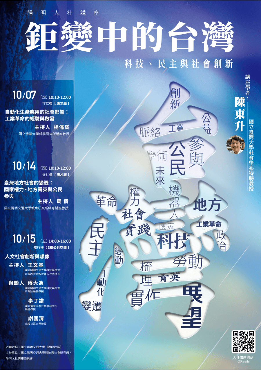 主辦單位:國立陽明交通大學科技與社會研究所、陽明人社講座委員會