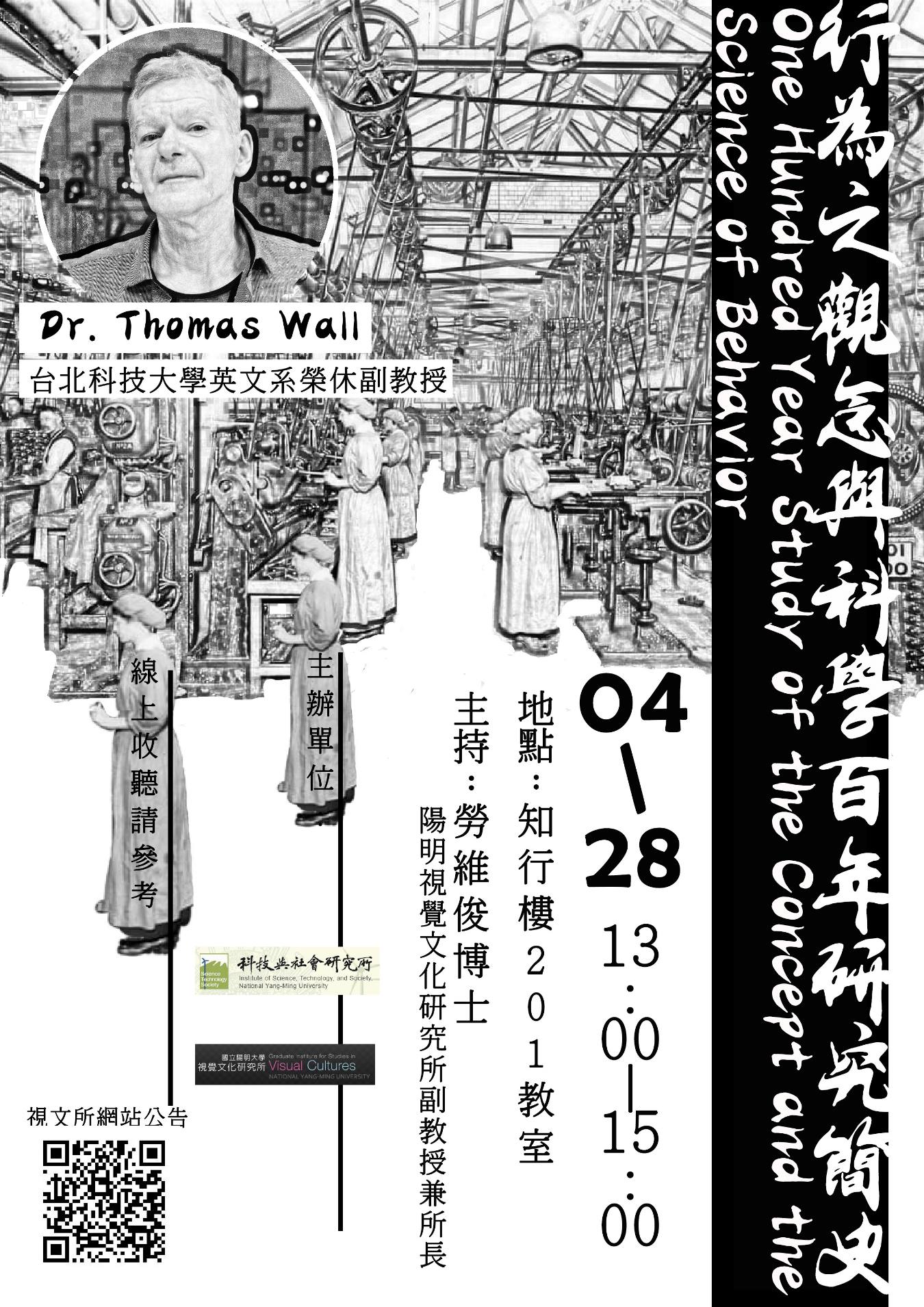 講 者:Dr. Thomas Wall (國立臺北科技大學應用英文系榮休副教授)