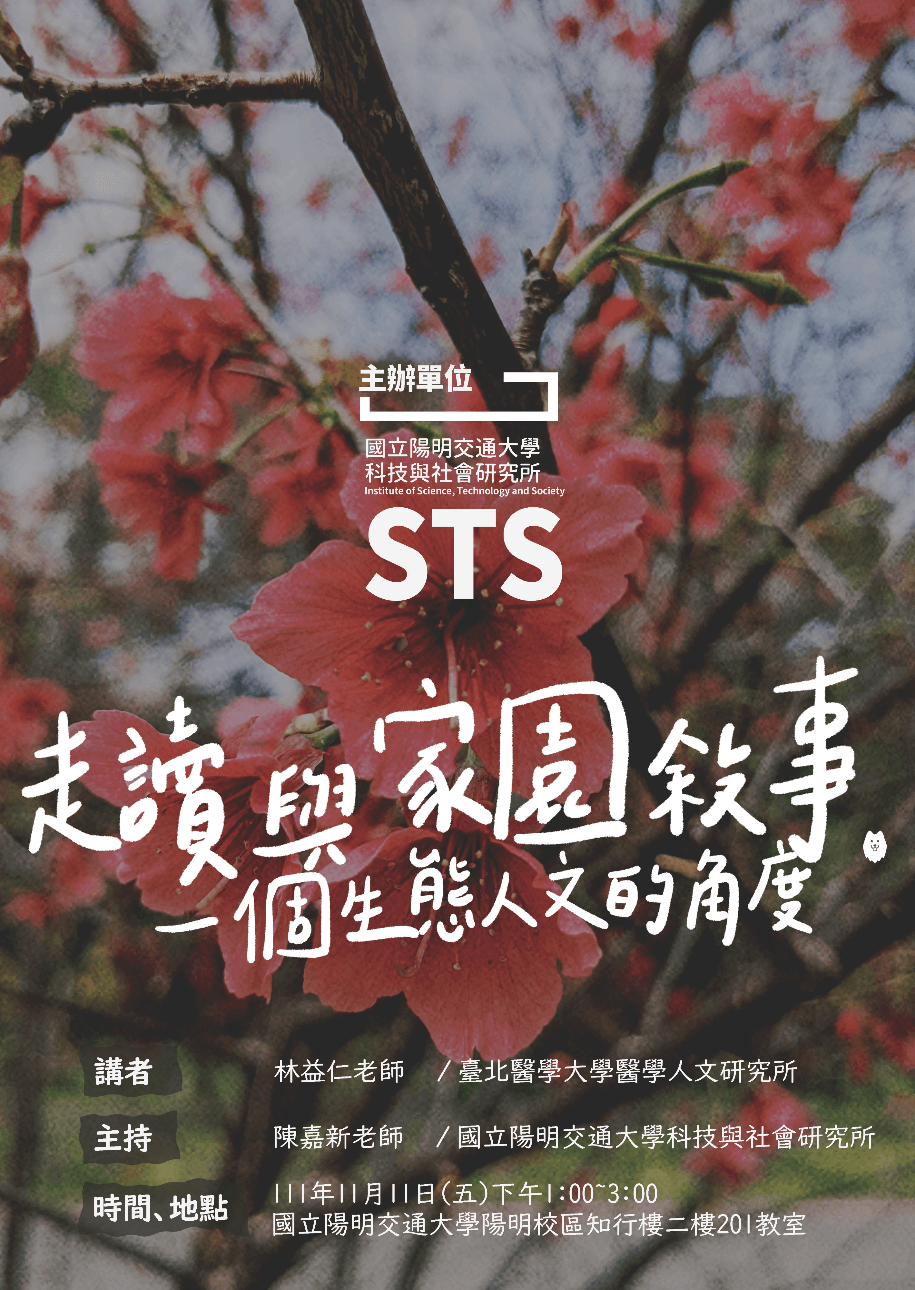 【學術演講】111.11.11(五)下午1:00 走讀與家園敘事:一個生態人文的角度