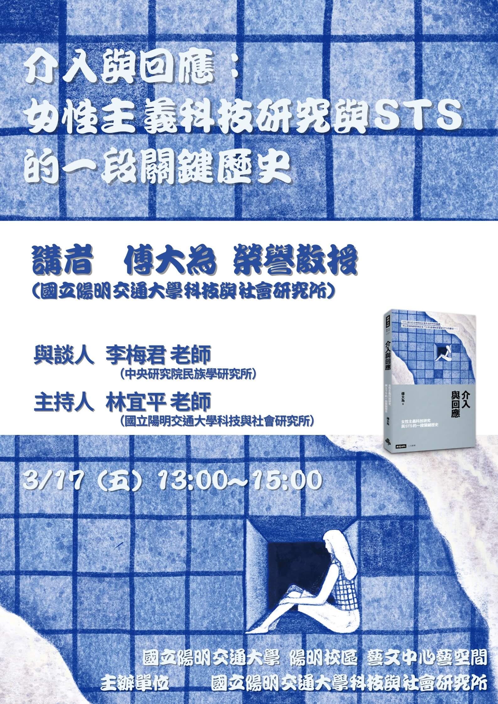 112.03.17(五)下午1:00 《介入與回應》新書發表與座談 Posted on 2023-02-242025-01-10 by sts65072 講 者:傅大為 榮譽教授 (國立陽明交通大學科技與社會研究所) 與談人:李梅君 助研究員 (中央研究院民族學研究所) 主持人:林宜平 副教授 (國立陽明交通大學科技與社會研究所) 時 間:112年3月17日(五)下午1:00~3:00 地 點:國立陽明交通大學(陽明校區)藝文中心藝空間 線上參與:https://meet.google.com/xxa-mkoq-adp 附件 1120317《介入與回應》新書發表與座談海報_附件 (477 kB)