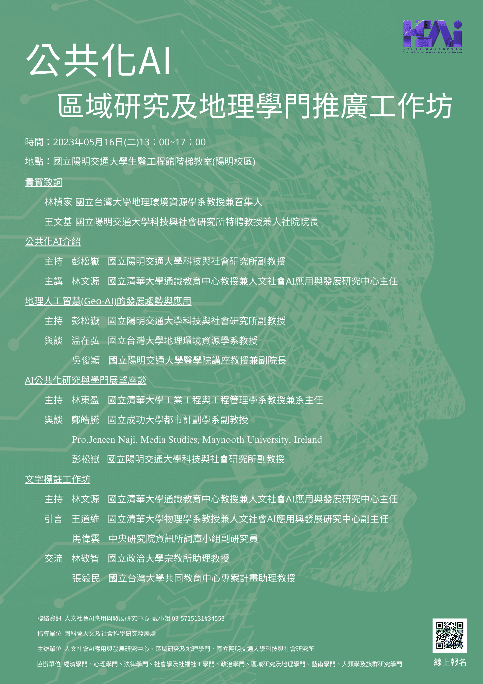 主辦單位:人文社會AI應用與發展研究中心、區域研究及地理學門、國立陽明交通大學科技與社會研究所