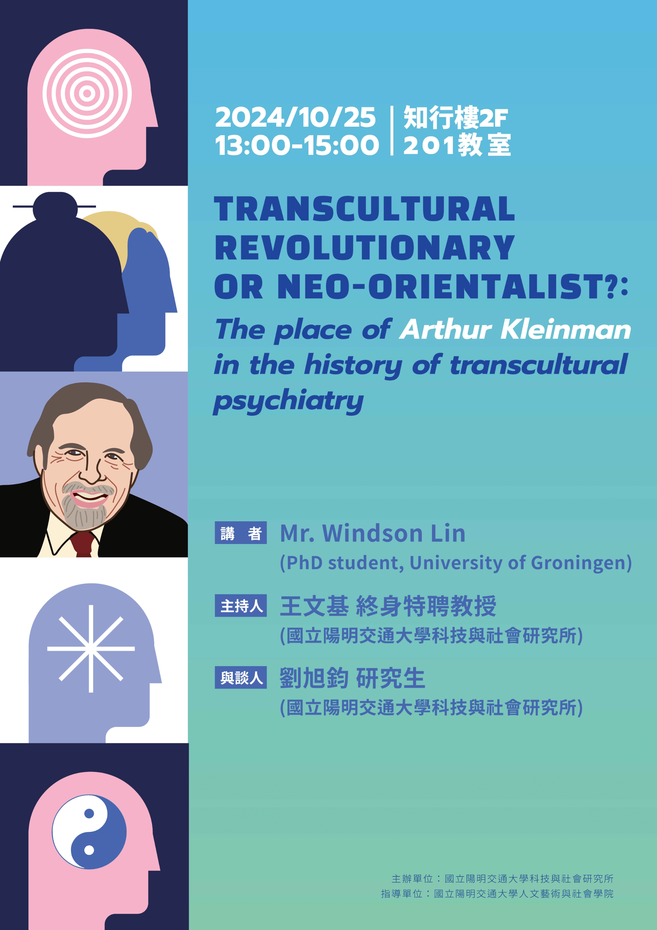 講 題:Transcultural revolutionary or Neo-Orientalist?: The place of Arthur Kleinman in the history of transcultural psychiatry